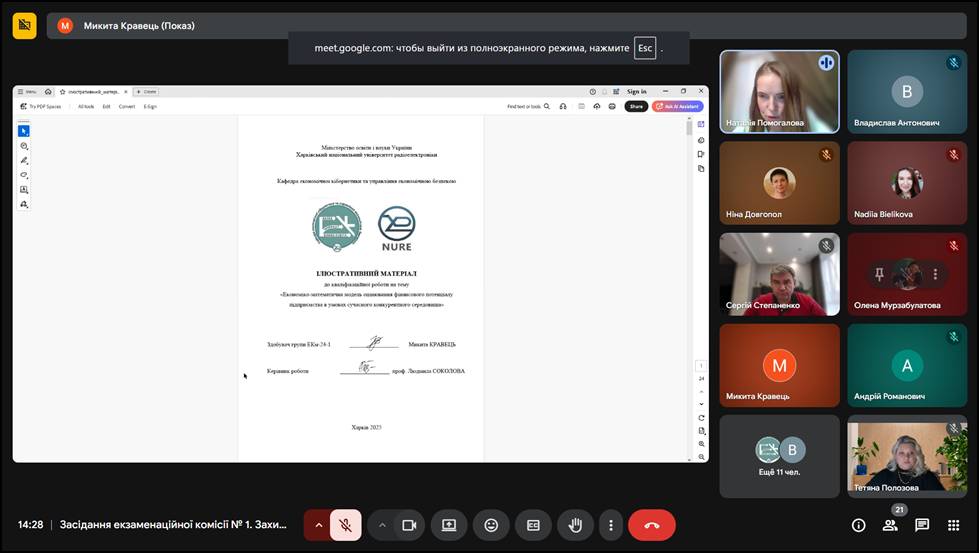 Захист кваліфікаційних робіт. Магістри ОПП «Економічна кібернетика» 22.12.2025