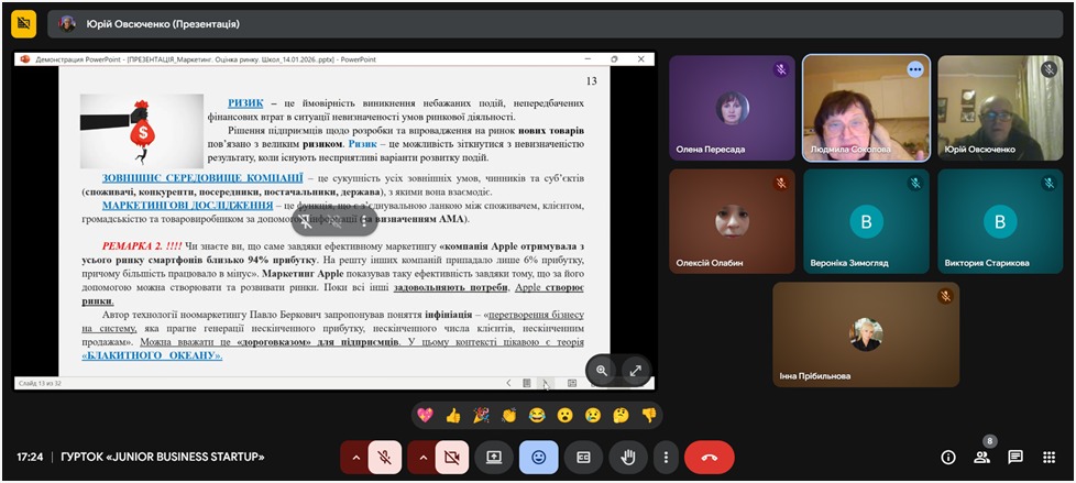 Чергове засідання гуртка «Junior Business Startuper». Лектор дня – професор Соколова Л.В.